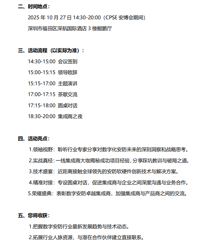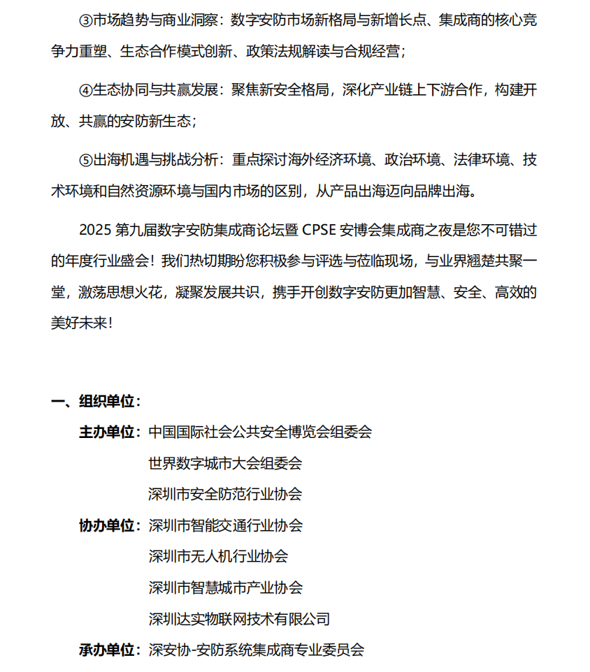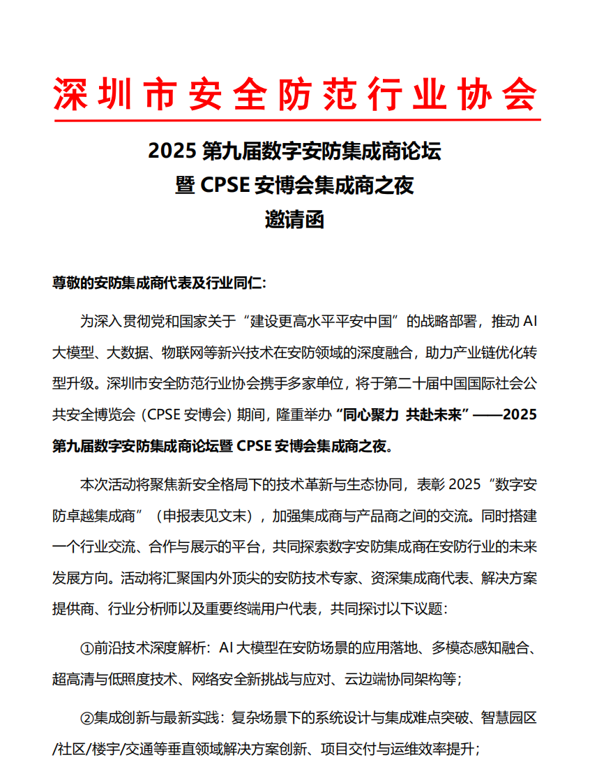 關于邀請參加2025 第九屆數字安防集成商論壇 暨 CPSE 安博會集成商之夜的函