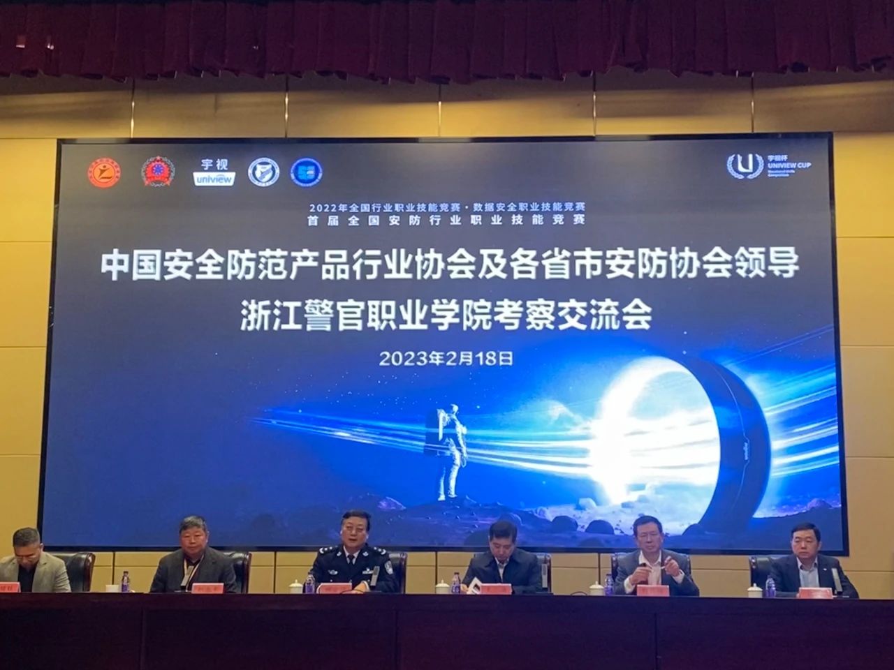 隨后,青島團隊參加了浙江警官職業學院考察交流活動。本次考察活動有中安協秘書長王楠、副秘書長劉存信、專家咨詢辦主任劉鎖柱,浙江省安防協會秘書長趙永華,浙江宇視科技有限公司副總裁林凱,浙江省司法廳黨委委員、院黨委書記顧金法出席。以及21個省市安防協會領導、院校代表50余人參加。