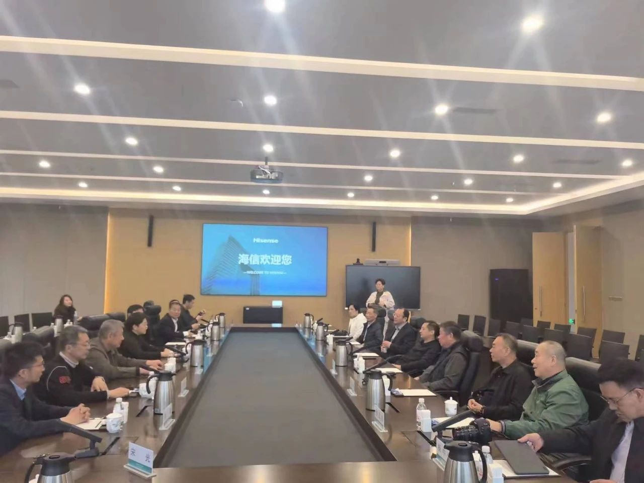 2023年4月23日下午,青島市社會公共安全防范協會(以下簡稱“青島安防協會”)在海信研發中心舉辦了參觀考察與座談交流活動。中國安全防范產品行業協會(以下簡稱“中安協”)王楠秘書長以及各地友好協會領導參觀了海信集團有限公司位于青島市嶗山區的全球研發總部——海信新研發中心。青島安防協會劉雪莉理事長接待來訪嘉賓,并主持召開了友好協會座談交流會議。