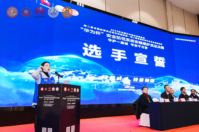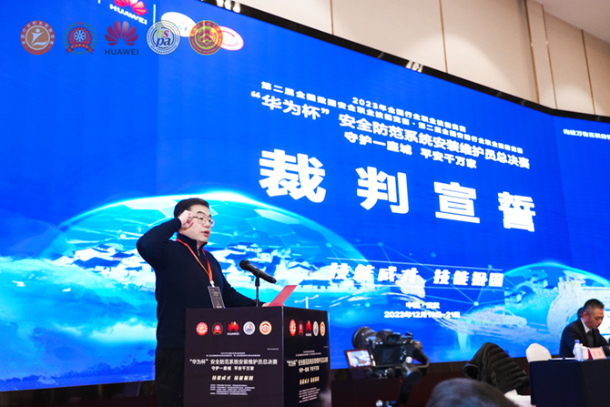 隨后,公安部一所賈鵬裁判長代表裁判宣誓,參賽選手程靜代表選手宣誓,經過倒計時啟動環節,2023年全國行業職業技能競賽—第二屆全國數據安全職業技能競賽暨第二屆全國安防行業職業技能競賽“華為杯”安全防范系統安裝維護員職業技能競賽總決賽正式開始。